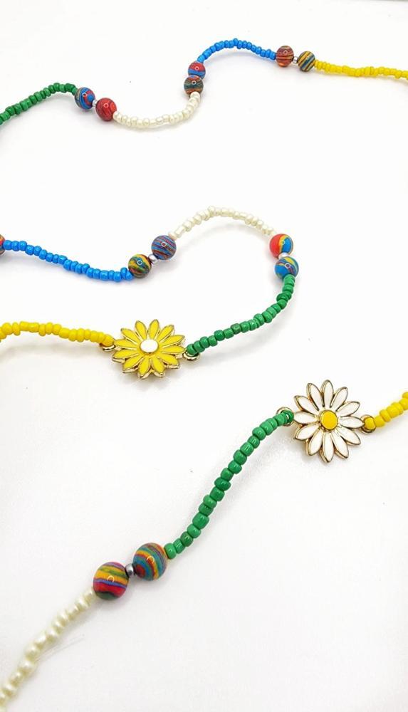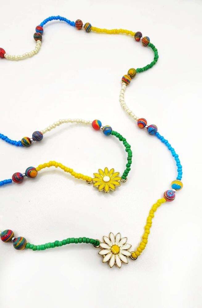 Brimming with joy and charm, this handmade chain features lively beads and fun flowers that instantly brighten your day. A design that celebrates the spirit of youth with a stylish, whimsical twist.