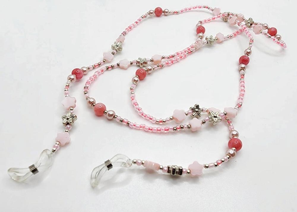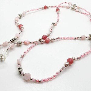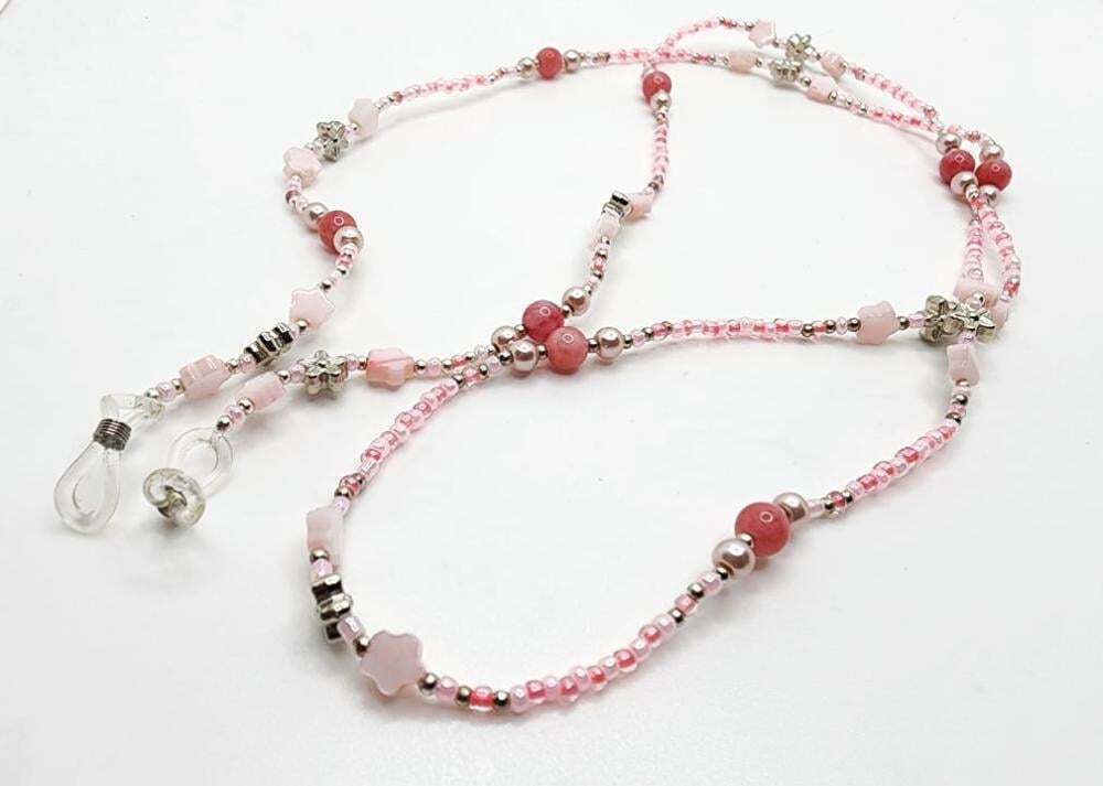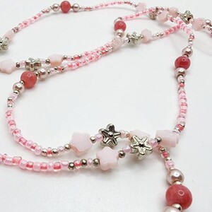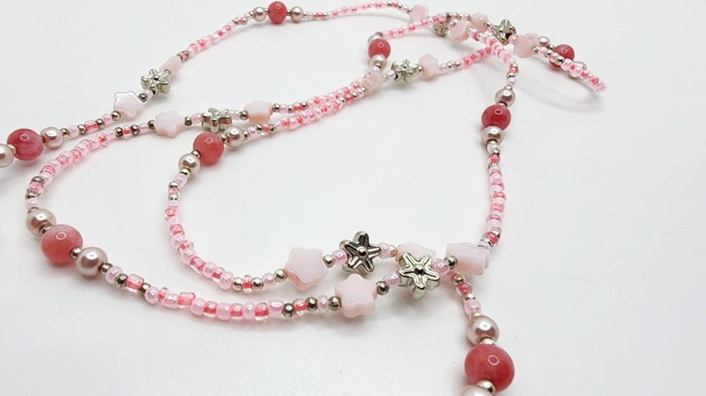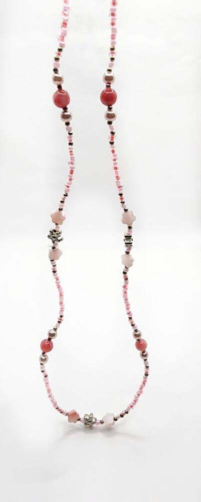 Soft and elegant, this handcrafted chain blends pink and silver beads with delicate shell flowers and natural stones—offering a uniquely graceful and organic feel. A perfect piece for adding a subtle romantic charm to your everyday look.